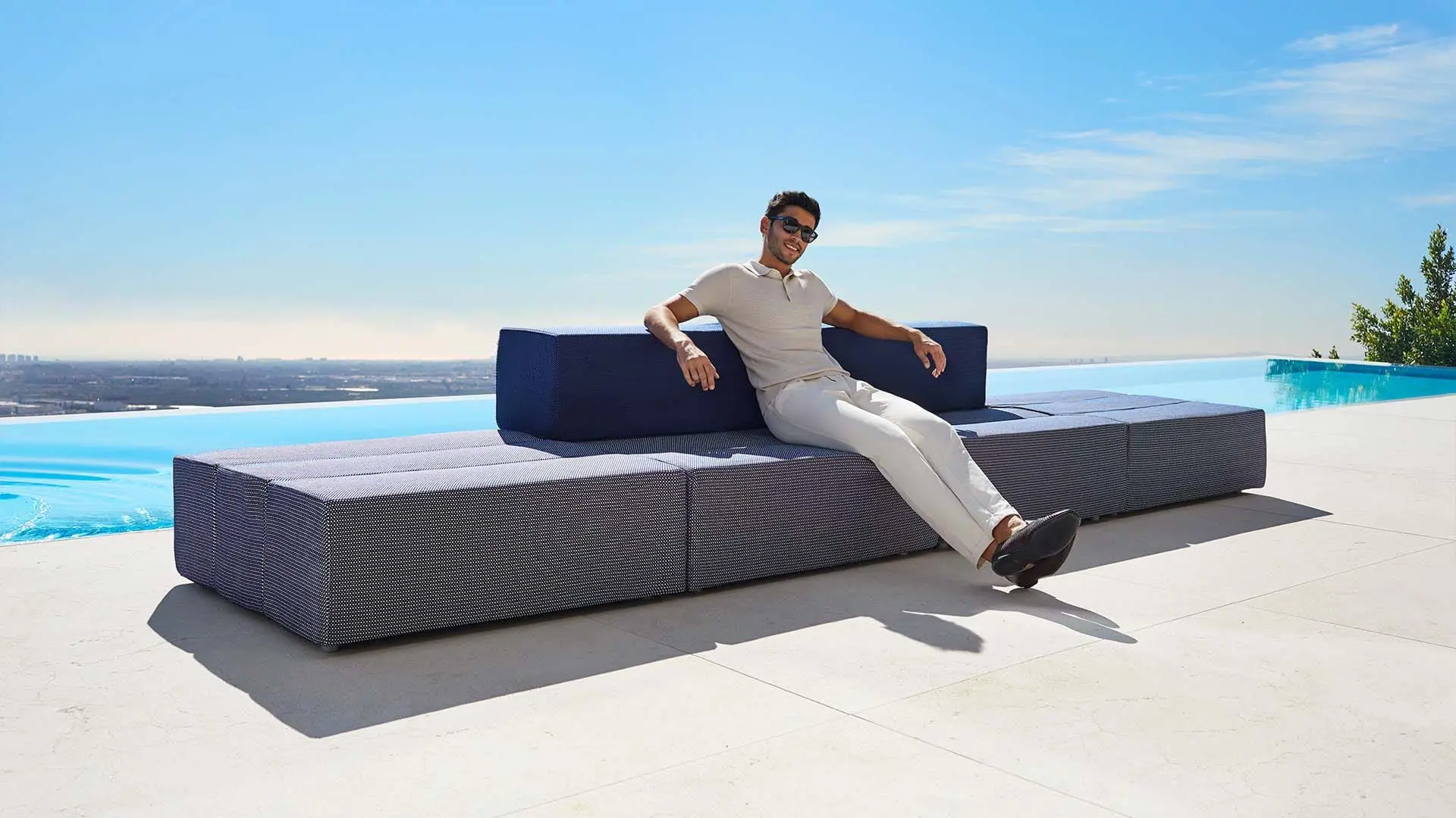 The collection’s construction, based on polyurethane foam with a metallic structure upholstered with polypropylene fabric, makes Tablet a perfect collection both for indoor and outdoor spaces, thanks to its sophisticated aesthetic and finishing.