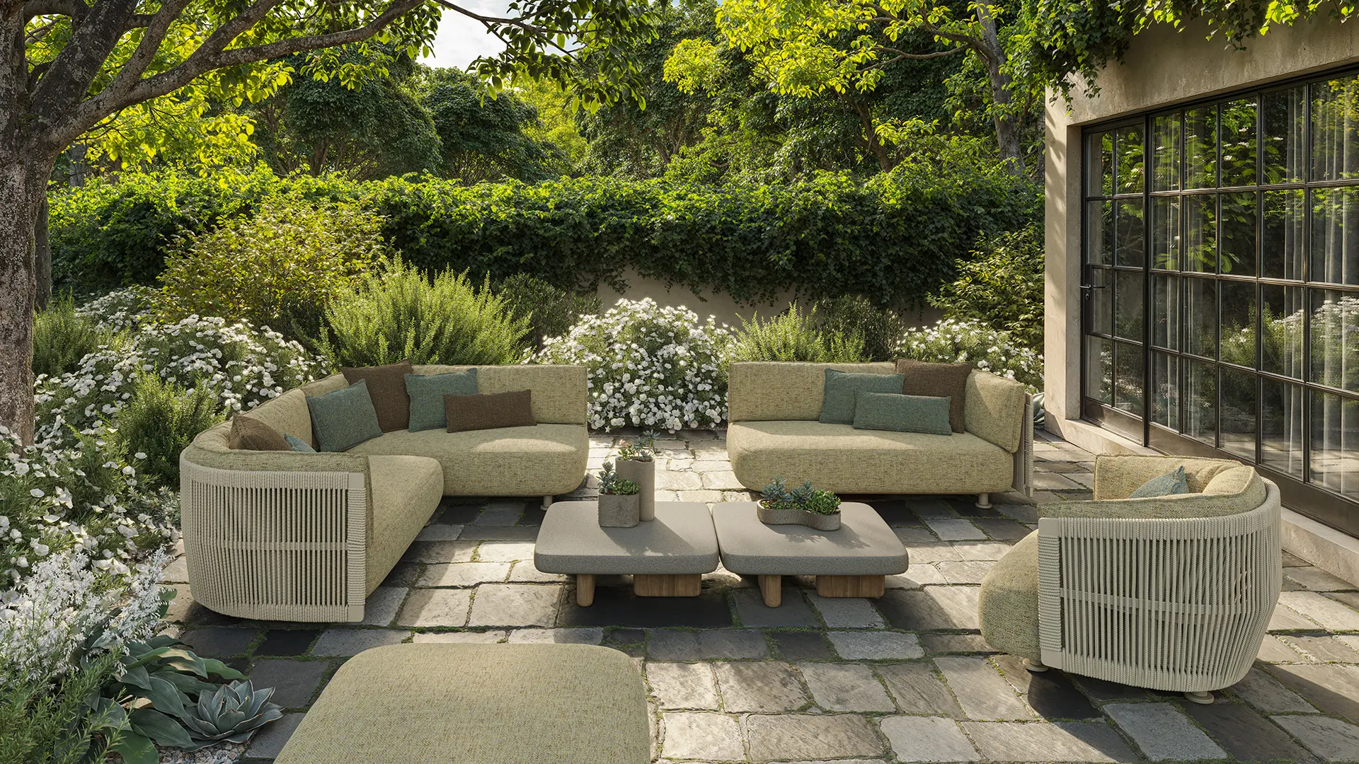 Las formas fluidas de Serra dialogan con cualquier arquitectura. Suavizan la geometría limpia de una terraza contemporánea, se integran entre los muros de piedra seca de una villa mediterránea y añaden carácter a los jardines más frondosos.