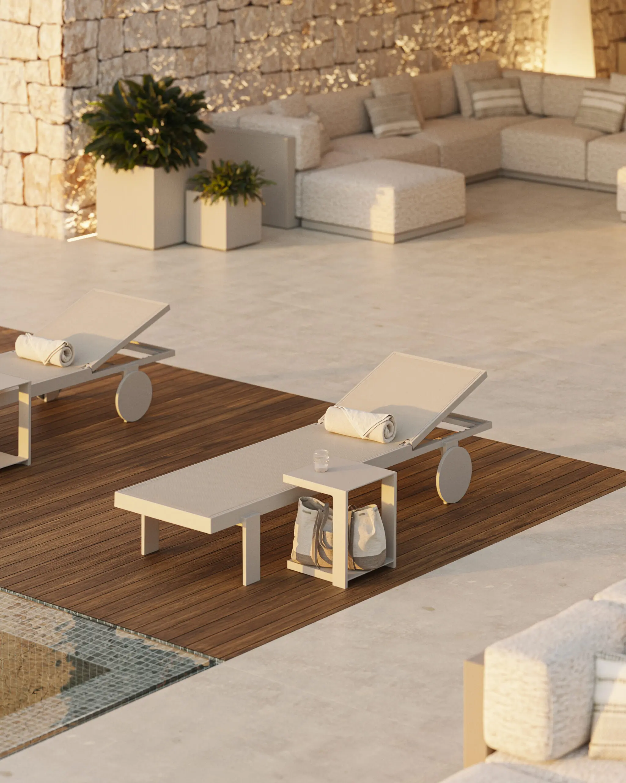 Las tumbonas no son solo piezas funcionales: son el lugar donde el tiempo se detiene. Donde el huésped baja el ritmo, observa el entorno y entiende, sin palabras, el nivel de cuidado que hay detrás de cada detalle.