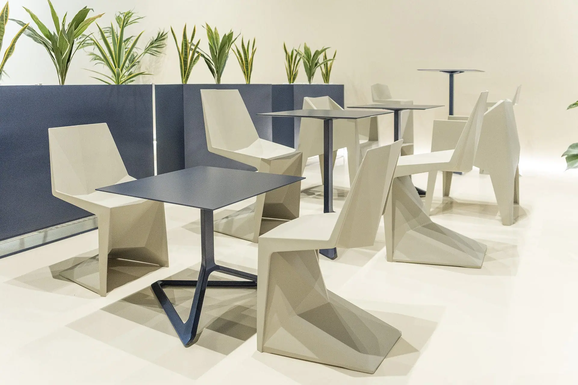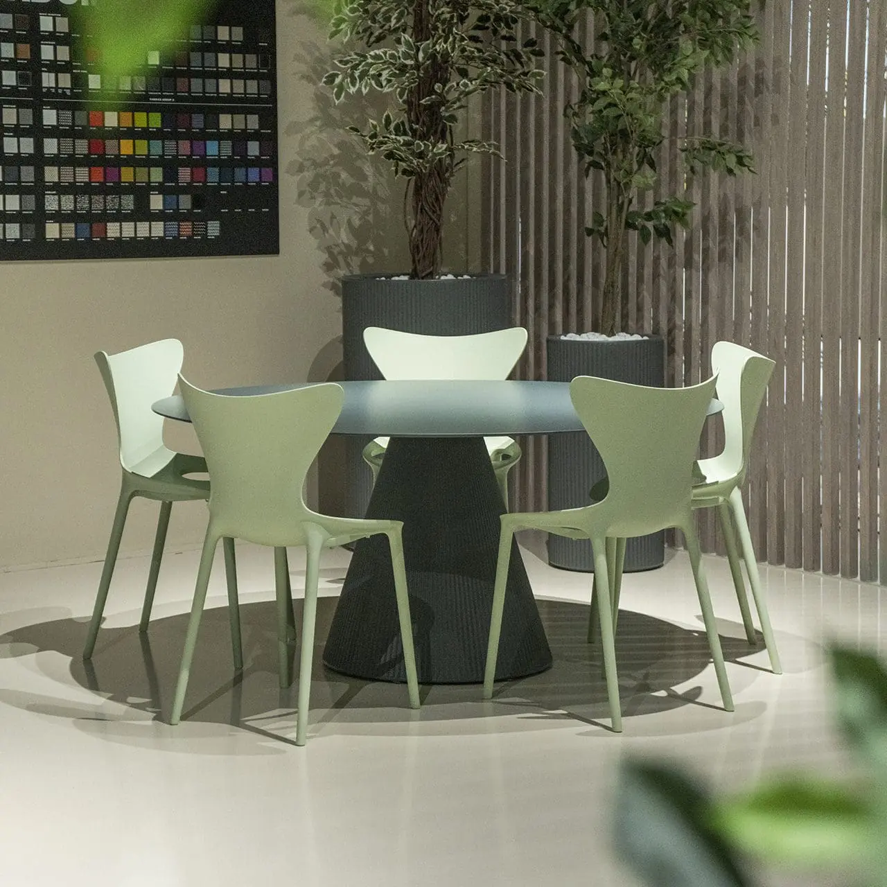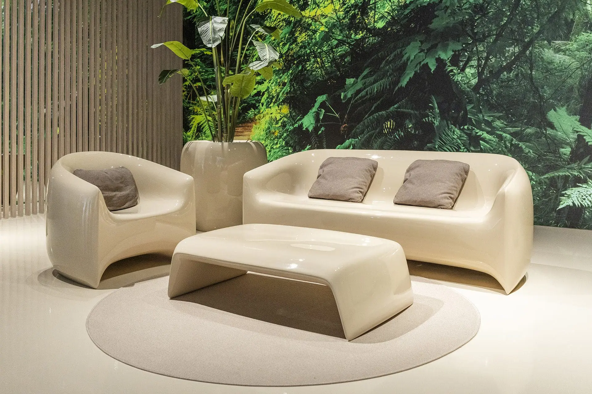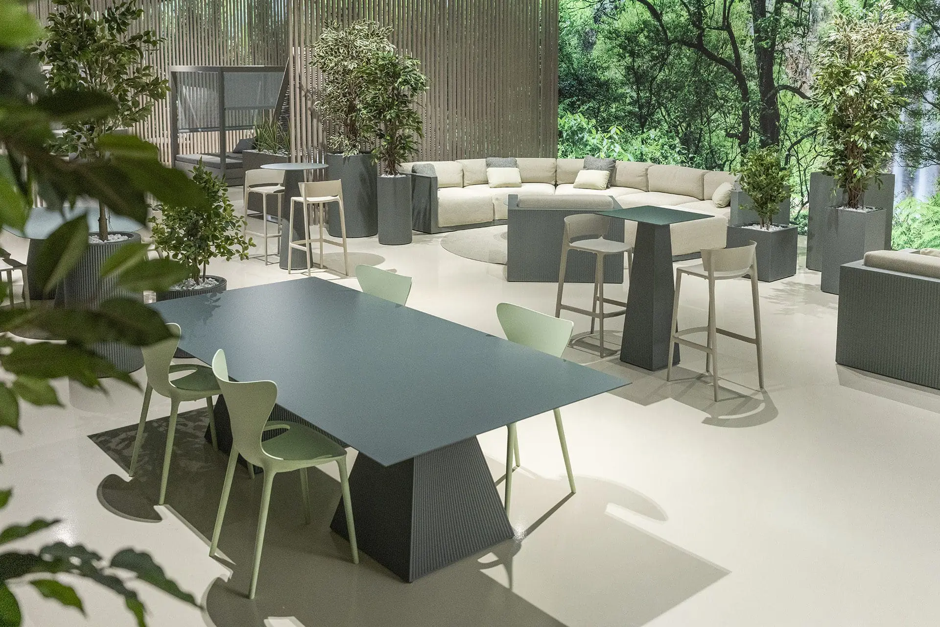 Por otro lado, en la segunda planta, con 750 metros cuadrados, sumérgete en la sofisticación y el estilo diseñados para proyectos comerciales. Explora nuestra gama de productos de polipropileno, ideales para el sector HORECA. Además, rinde homenaje a nuestros inicios con una colección de maceteros que realzan la estética de cualquier espacio hostelero.