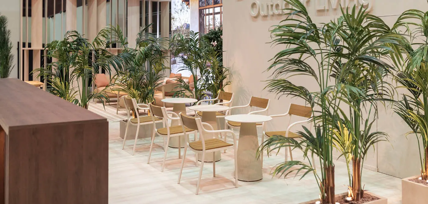 El recorrido continúa con Pasadena, de Jean-Marie Massaud, presentada en Salone 2025 y ahora presente en Valencia promoviendo su carácter mediterráneo; Africa, de Eugeni, que evoluciona como familia al incorporar nuevas tipologías que completan su propuesta para contract y residencial; Milos, de Jean-Marie, que amplifica su espíritu orgánico con nuevos acabados y tonalidades; Fusta, de Ramón Esteve, donde la teca dialoga con líneas precisas y un confort honesto; y Origami, una colección que convierte el arte del plegado en macetas de presencia gráfica y amable, capaces de activar cualquier espacio con una sonrisa.