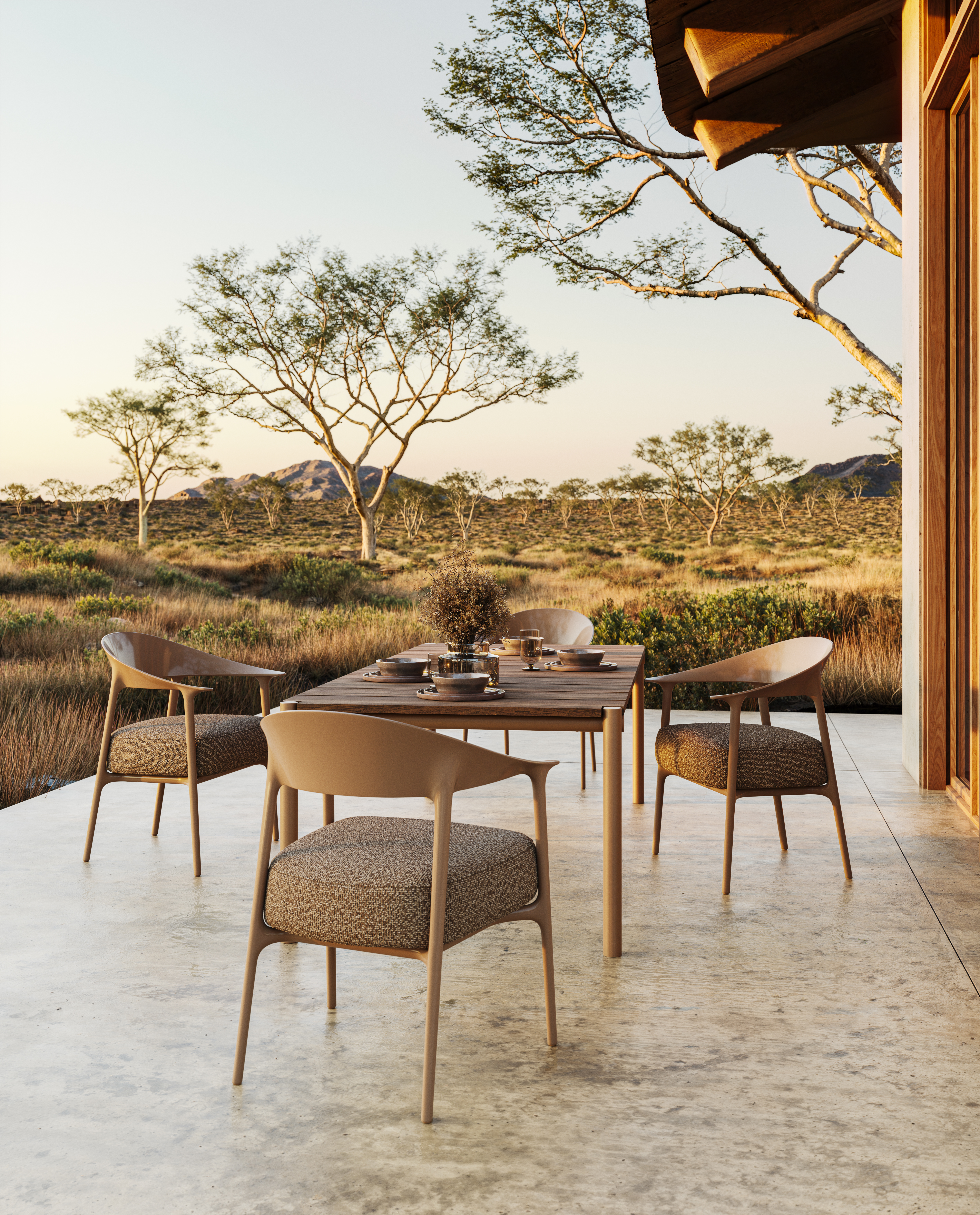 Su forma sencilla pero refinada responde a una filosofía muy clara: encontrar la belleza en lo esencial. El tapizado aporta una nueva dimensión sensorial, sin alterar el carácter que ha convertido a Africa en un icono contemporáneo del diseño de Vondom.