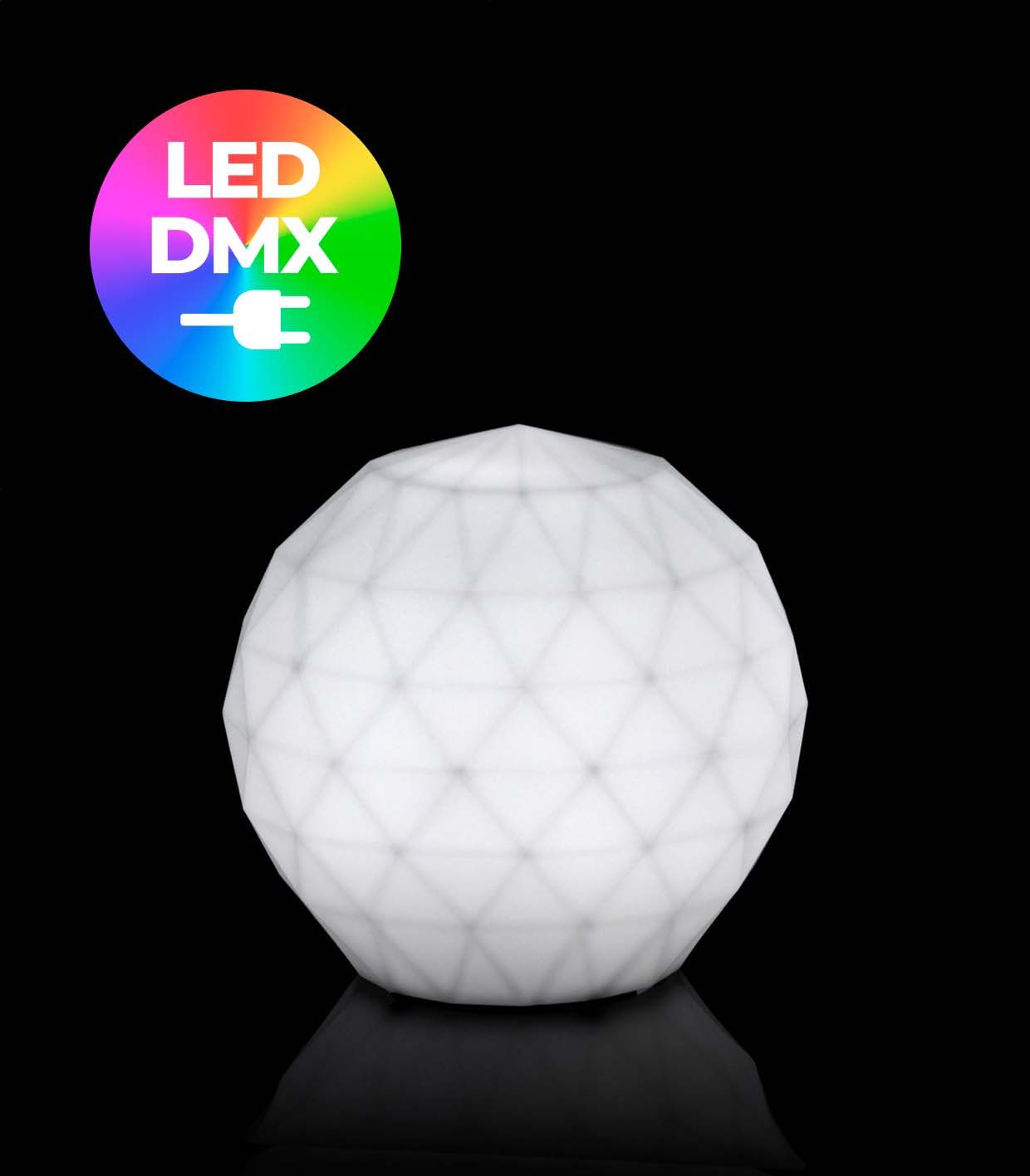 Con iluminación interior mediante tecnología LED RGBW, alimentado por una batería. Incluye mando a distancia para cambiar de color. Controlado también por DMX-1024 (wireless). Solo disponible en acabado hielo mate. permitiendo la comunicación entre uno o multiples productos simultaneamente mediante el transmisor DMX (no incluido). Hay dos opciones para seleccionar. Professional XLR DMX y Home WIFI DMX.
