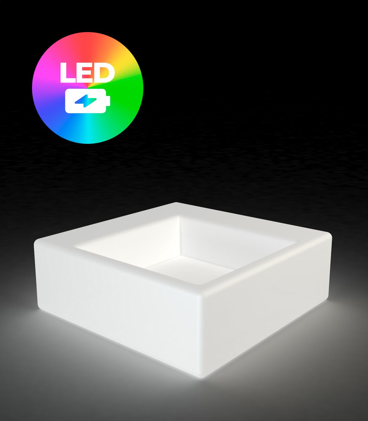 Con iluminación interior mediante tecnología LED RGBW, alimentado por una batería. Incluye mando a distancia para cambiar de color. Controlado también por DMX-1024 (wireless). Solo disponible en acabado hielo mate. permitiendo la comunicación entre uno o multiples productos simultaneamente mediante el transmisor DMX (no incluido). Hay dos opciones para seleccionar. Professional XLR DMX y Home WIFI DMX.