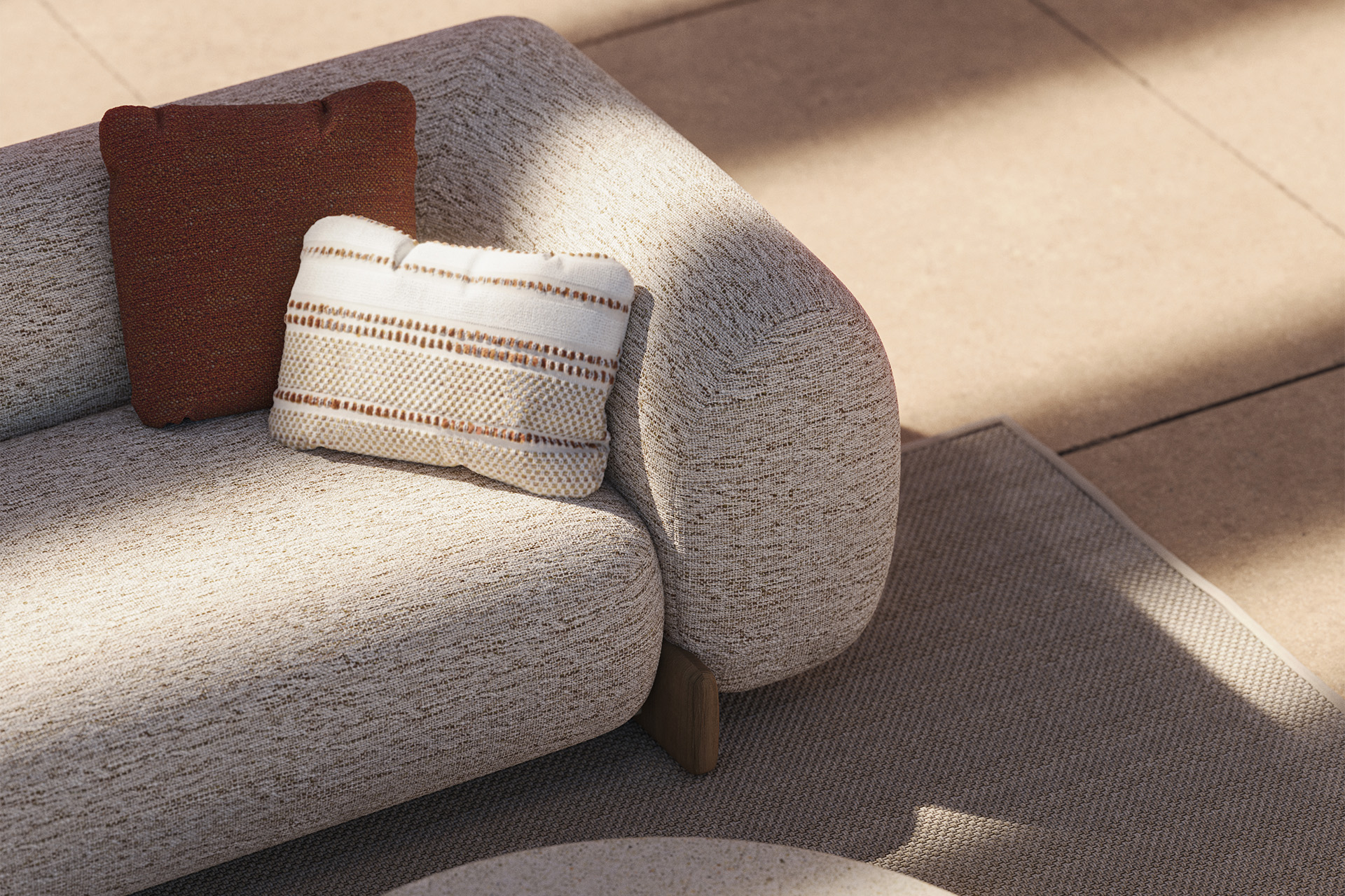 Este sofá modular combina la durabilidad de la espuma de poliuretano flexible con la belleza natural de la madera de iroko. Su diseño integra soluciones y materiales de primera calidad, especialmente concebidos para resistir las condiciones exteriores, sin comprometer la calidez y la comodidad.
