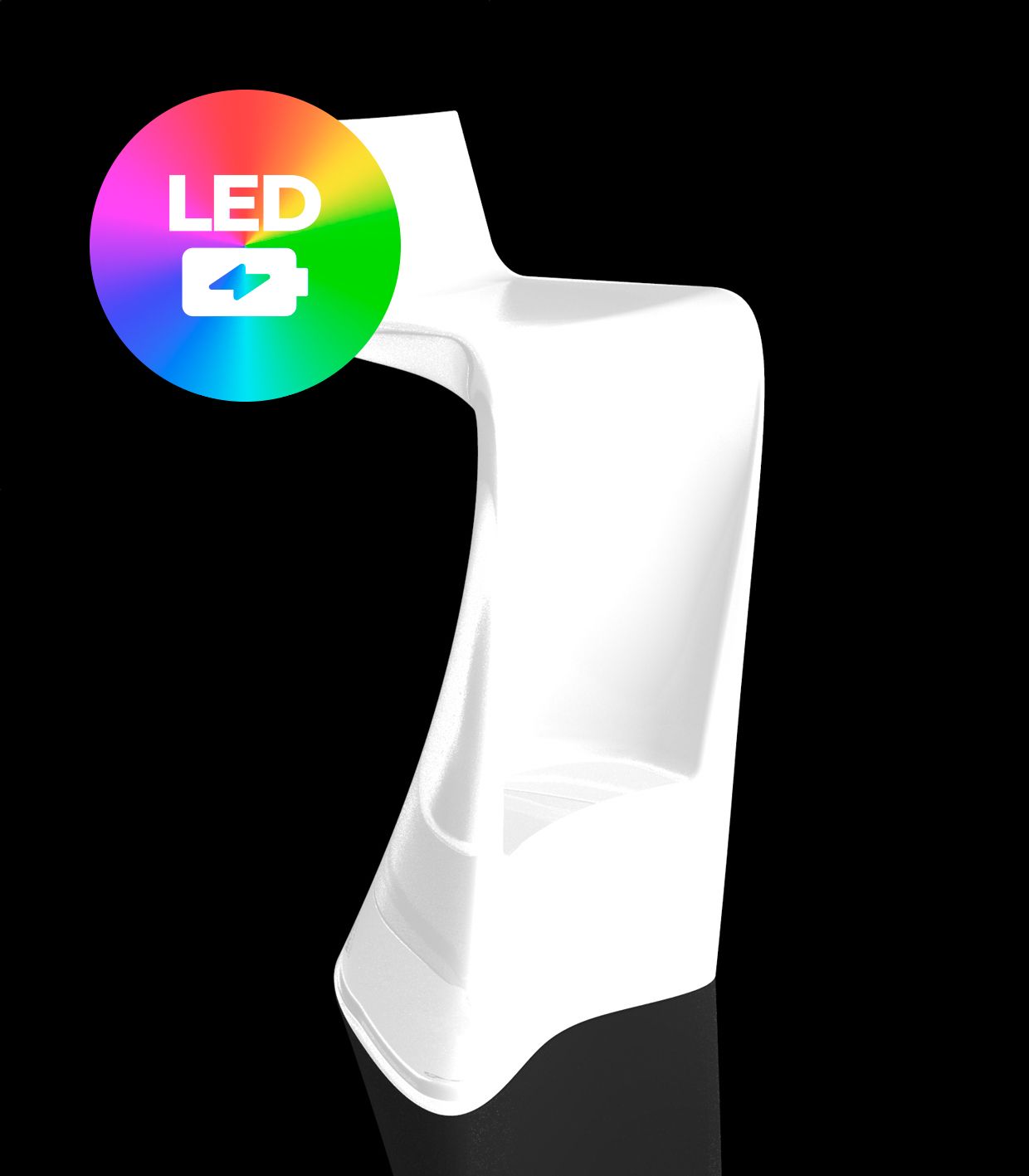 Con iluminación interior mediante tecnología LED RGBW, alimentado por una batería. Incluye mando a distancia para cambiar de color. Controlado también por DMX-1024 (wireless). Solo disponible en acabado hielo mate. permitiendo la comunicación entre uno o multiples productos simultaneamente mediante el transmisor DMX (no incluido). Hay dos opciones para seleccionar. Professional XLR DMX y Home WIFI DMX.