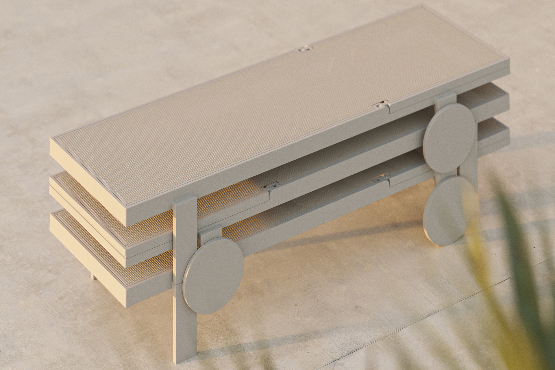 Construida en polipropileno reforzado con fibra de vidrio y tejido Batyline, la tumbona Gatsby ofrece durabilidad, comodidad y versatilidad. Sus grandes ruedas facilitan el transporte, mientras que el respaldo ajustable en diferentes posiciones asegura un confort personalizado. Su diseño apilable optimiza el almacenamiento, haciéndola ideal para cualquier entorno exterior.