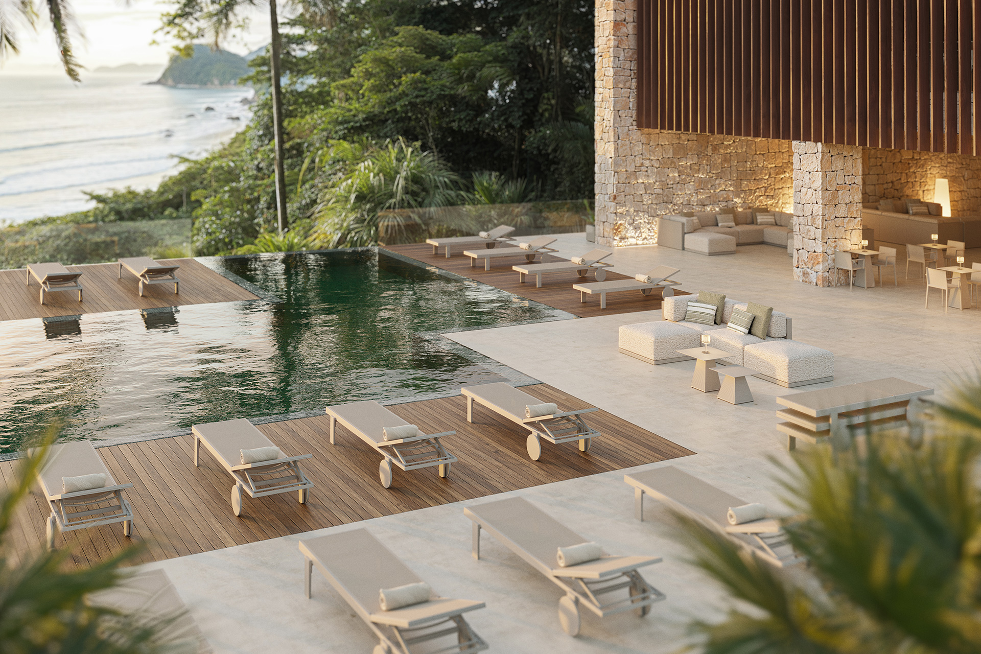 Inspirada en el glamur de los años 20, la tumbona Gatsby rinde homenaje al estilo Art Déco con sus formas limpias y elegantes. Cada línea y ángulo de la tumbona refleja la opulencia y sofisticación de una época dorada, ofreciendo no solo una pieza funcional, sino también un elemento decorativo que enriquece el entorno exterior. Su diseño minimalista y sus detalles refinados evocan una sensación de lujo, transformando cualquier espacio al aire libre en un oasis de estilo.
