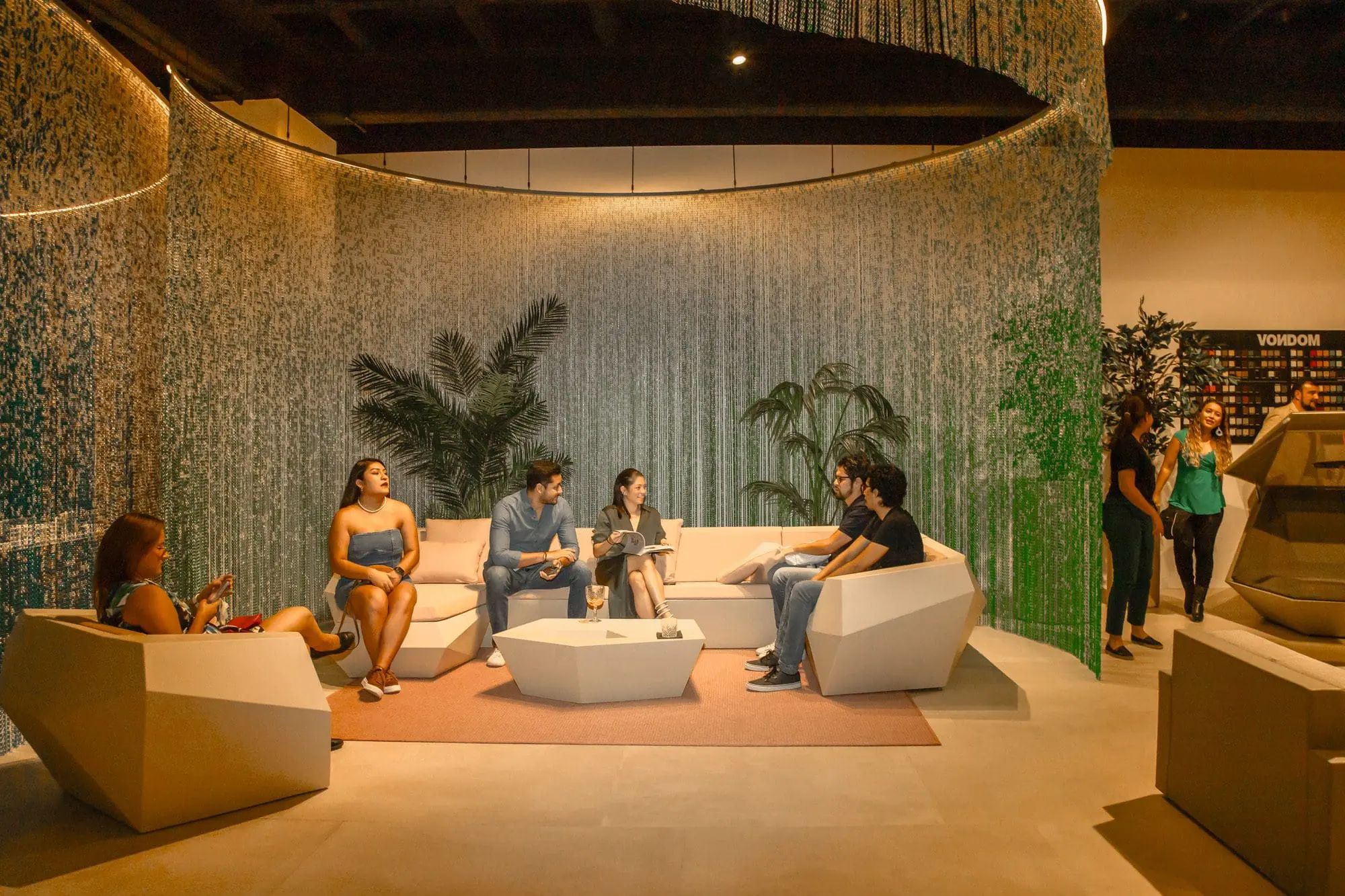 Todos los asistentes tuvieron el privilegio de recorrer el nuevo showroom de Vondom en Cancún, ubicado en la exclusiva zona de Puerto Cancún. Esta experiencia estimuló los cinco sentidos, ya que los visitantes pudieron contemplar el mobiliario más reciente, degustar una exquisita selección de sushi, disfrutar de música en vivo y sentir la suavidad de las nuevas telas.