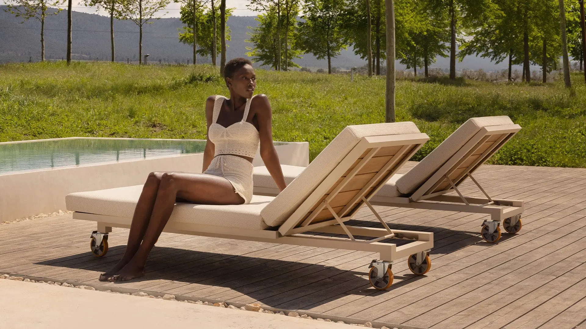 Una tumbona de diseño atemporal creada por Ramón Esteve con líneas minimalistas, permitiendo así la creación de espacios exteriores sobrios que te invitan a la calma y serenidad.