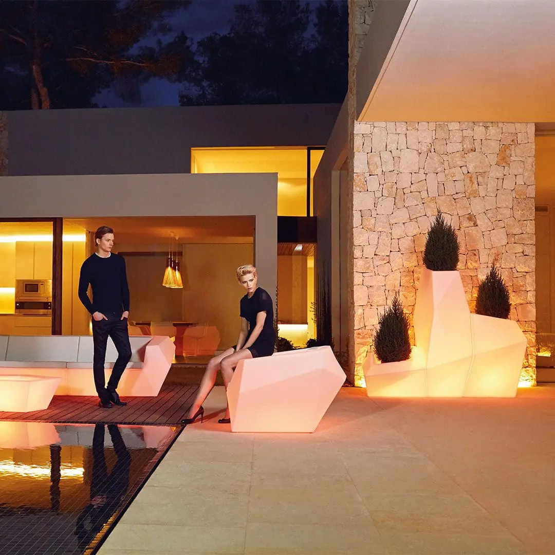 When night falls, lighting becomes the soul of outdoor spaces, transforming gardens and terraces into magical settings full of personality. At Vondom we have understood this potential and therefore offer a diverse collection of luminaires that are both sources of light and expressions of design. Our collections are unique proposals that dialogue with the natural and architectural environment, establishing a play of light and shadow in every corner.