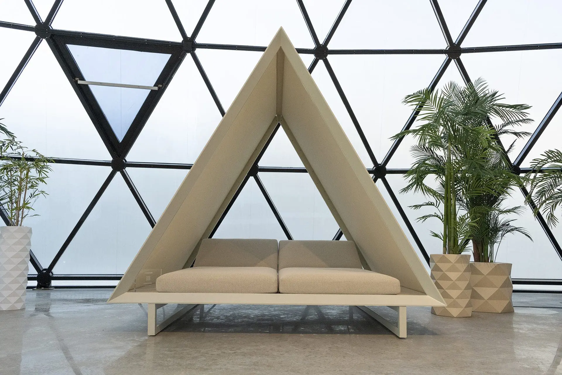 This new Vondom showroom has an aesthetic that brings about a sense of calm and serenity, a space with a Mediterranean, elegant and modern design. The materials, vegetation, colours and pieces are the set of elements that have helped us to create this extraordinarily designed dome.