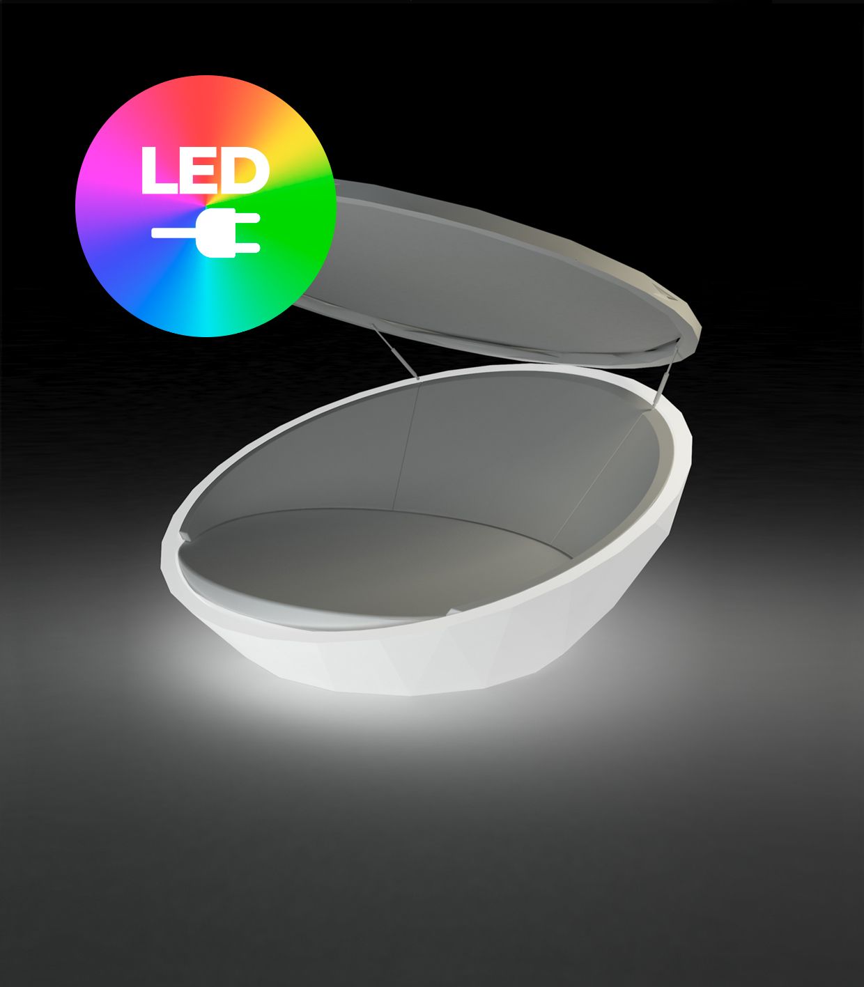 Unit with internal lighting with RGBW LED technology and remote control unit for switching colors. Available only in matte ice white finish. Remote control included.