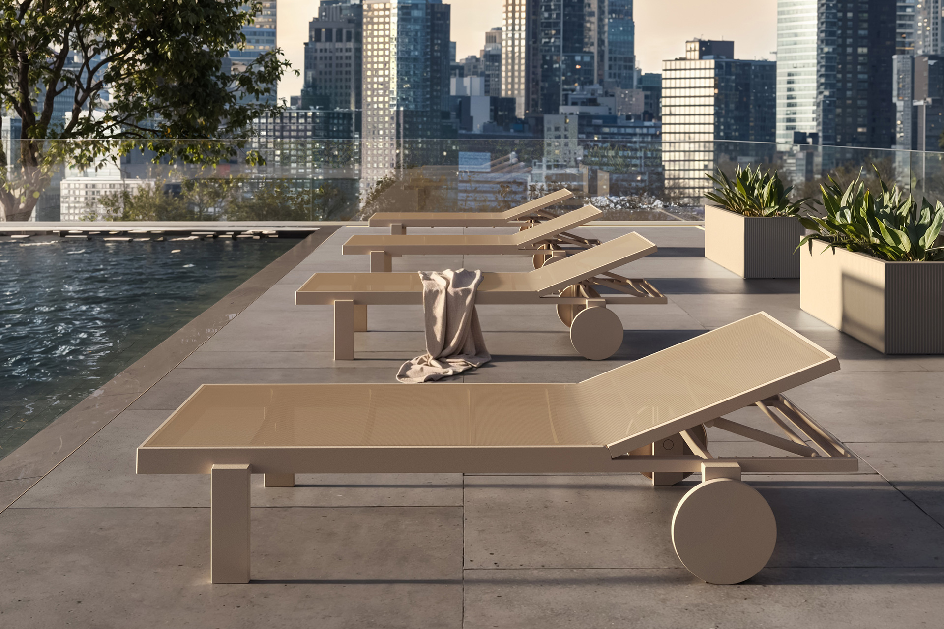 Inspired by the glamour of the 1920s, the Gatsby lounger pays homage to the Art Deco style with its clean, elegant forms. Every line and angle of the lounger reflects the opulence and sophistication of a golden era, offering not only a functional piece, but also a decorative element that enriches the outdoor environment. Its minimalist design and refined details evoke a sense of luxury, transforming any outdoor space into an oasis of style.
