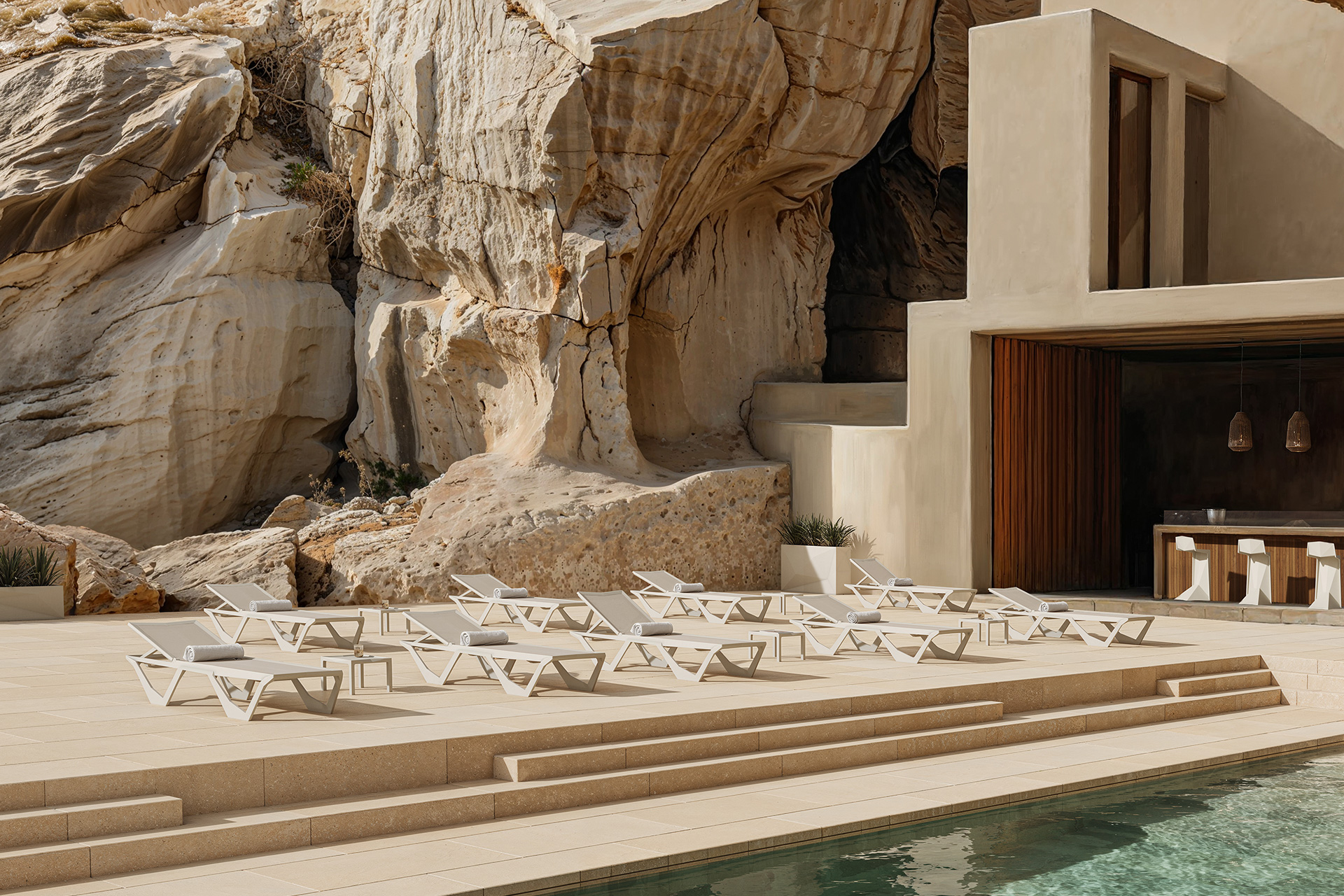 The Voxel lounger takes its inspiration from the angular, faceted geometry characteristic of Karim Rashid’s Voxel collection. This innovative design not only offers a contemporary aesthetic, but also enhances functionality. The angled shape provides a distinctive and elegant look that blends seamlessly into any setting, whether poolside, on a terrace or at the beach.