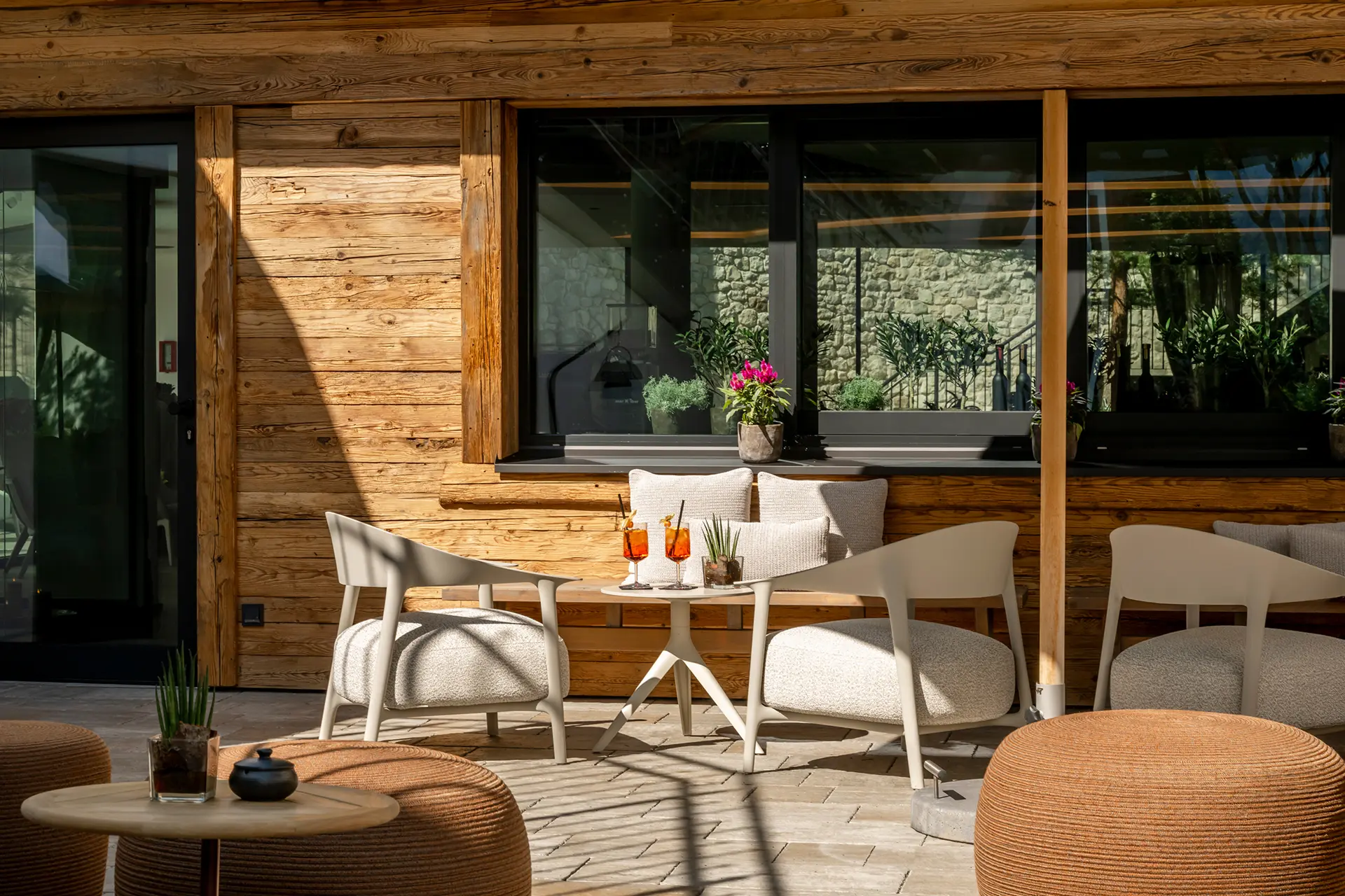 The result is an outdoor setting that feels sophisticated yet honest. A space that understands climate, shifting light, and the intensity of a mountain hotel.