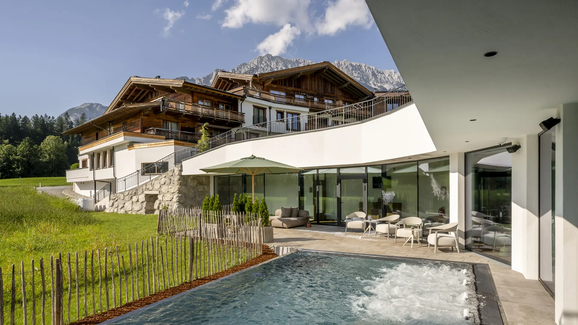 Hotel Kaiser in the Austrian Tyrol demonstrates how high-end outdoor hotel furniture can integrate seamlessly into demanding mountain environments.