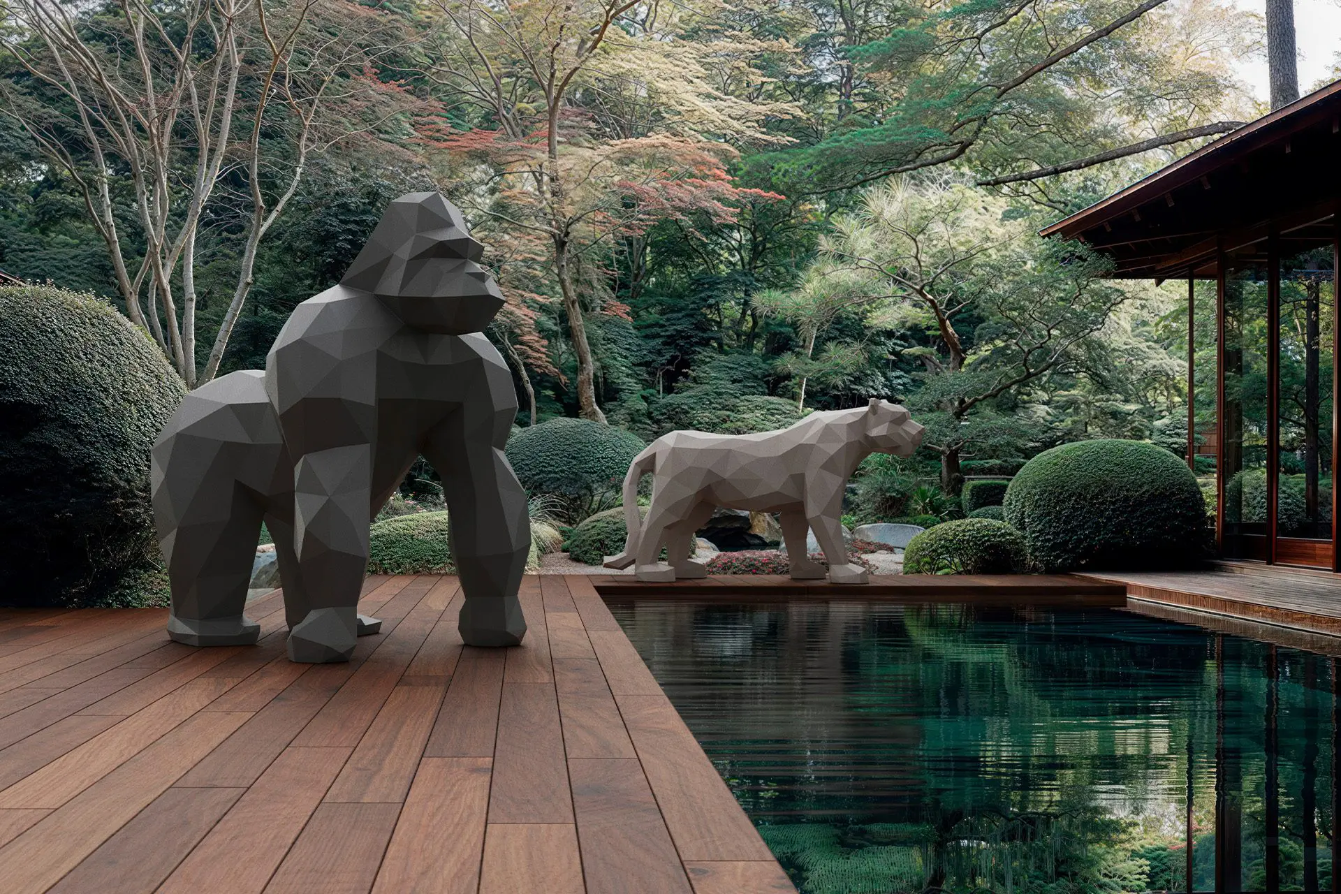 Inspired by the simplicity and sophistication of Origami, this collection brings the essence of simplified geometry outdoors through an exquisite selection of animals and faceted vases. The result of a meticulous design process, each piece not only captures the intrinsic beauty of geometric shapes, but also invites a sensory experience where light and shadow play to create captivating visual spectacles.