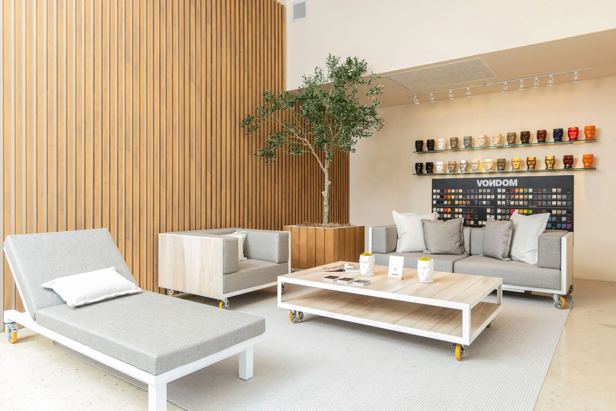 In the Vondom Miami Showroom, we have combined the beauty of nature with the avant-garde of design, transforming this space into a world of elegance and originality. One of the highlights of this new space is the use wooden slats as room dividers, creating a warm and welcoming atmosphere that is perfectly in line with our vision of sustainable design.