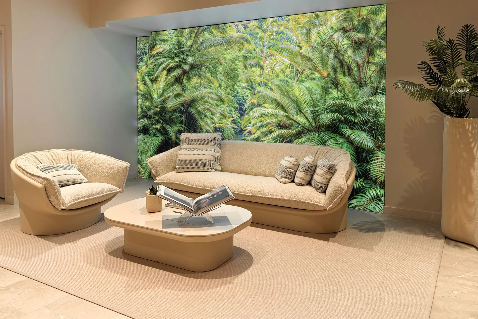 This space is a seamless blend of nature’s beauty and avant-garde design, creating a refined atmosphere that showcases elegance, originality, and our commitment to crafting timeless, sustainable pieces for sophisticated spaces.