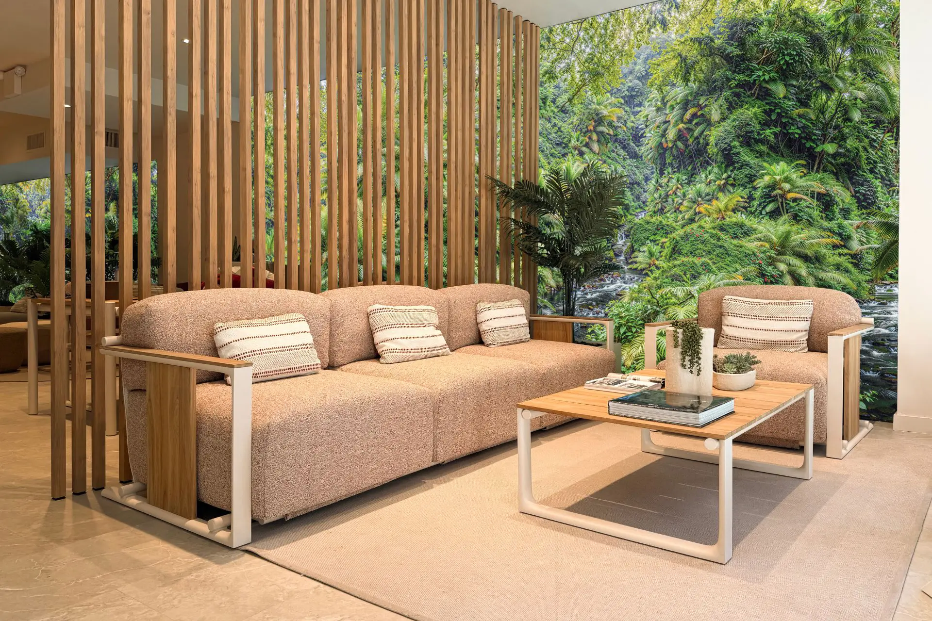 Enhance your patio with the perfect outdoor furniture. Explore our extensive range of outdoor furniture manufactured in Europe. From elegant dining sets to sophisticated armchairs, modular sofas, and sun loungers, we have everything to bring the indoor feeling and comfort to the outdoor areas of your home.