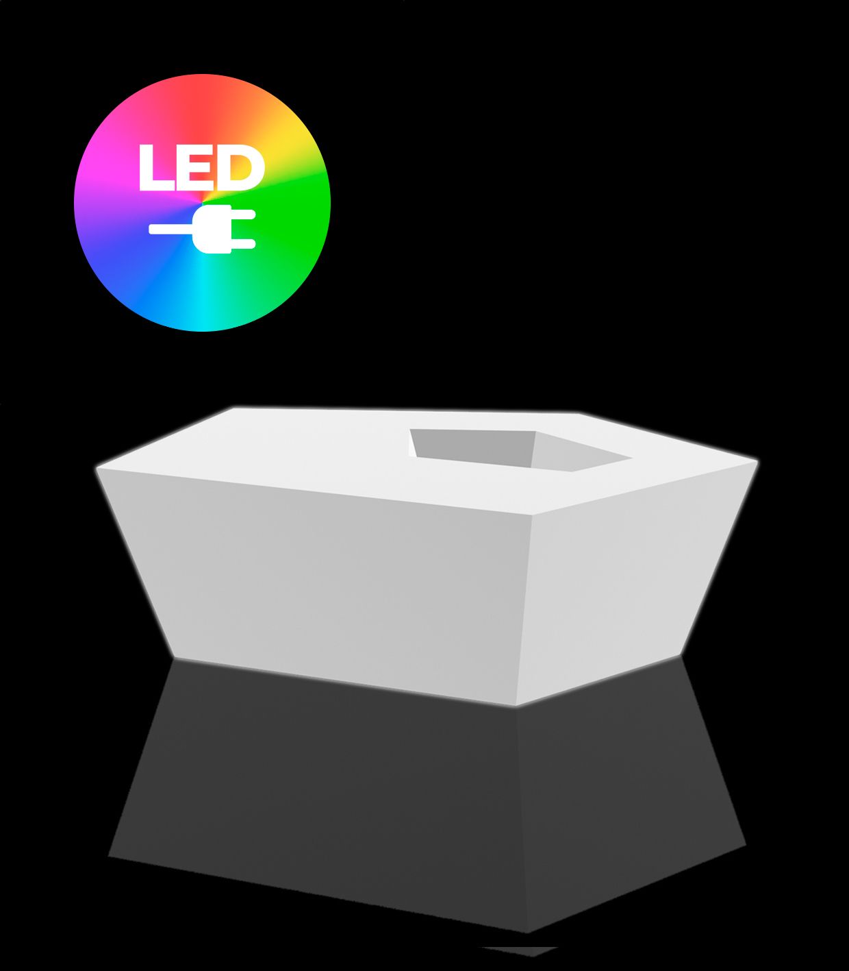 Unit with internal lighting with RGBW LED technology and remote control unit for switching colors. Also controlLED by DMX-1024 (wireless), enabling communication between one or more products simultaneously via the DMX transmitter (not included). There are two options to choose from: Professional XLR DMX and Home WIFI DMX. (Remote control included). Optional battery