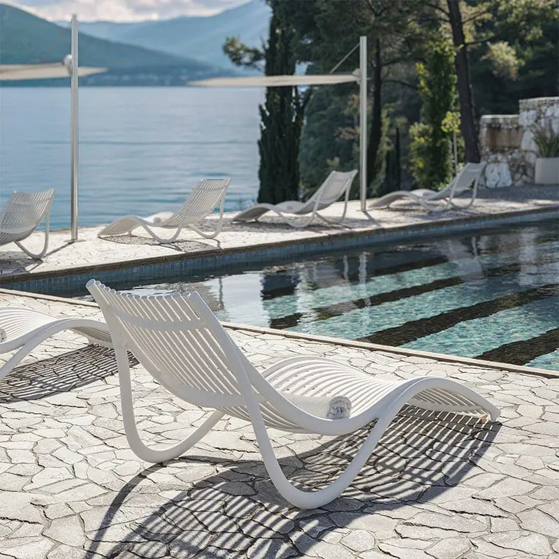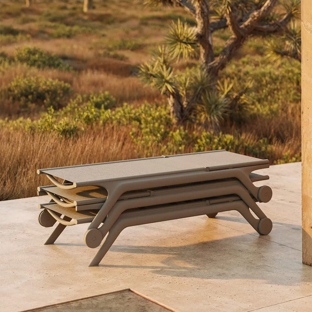 When every square foot counts, logistics is king. Vondom sun loungers are designed with efficiency in mind: they stack easily—some models up to 18 units—to optimize storage and transport. Their lightweight construction allows for effortless relocation, while the compact surfaces are easy to clean with just water and neutral soap. Built on this foundation of functionality, the design enhances the experience by adding comfort and aesthetic value—ensuring that every moment in the sun offers the same relaxation as an indoor lounge.