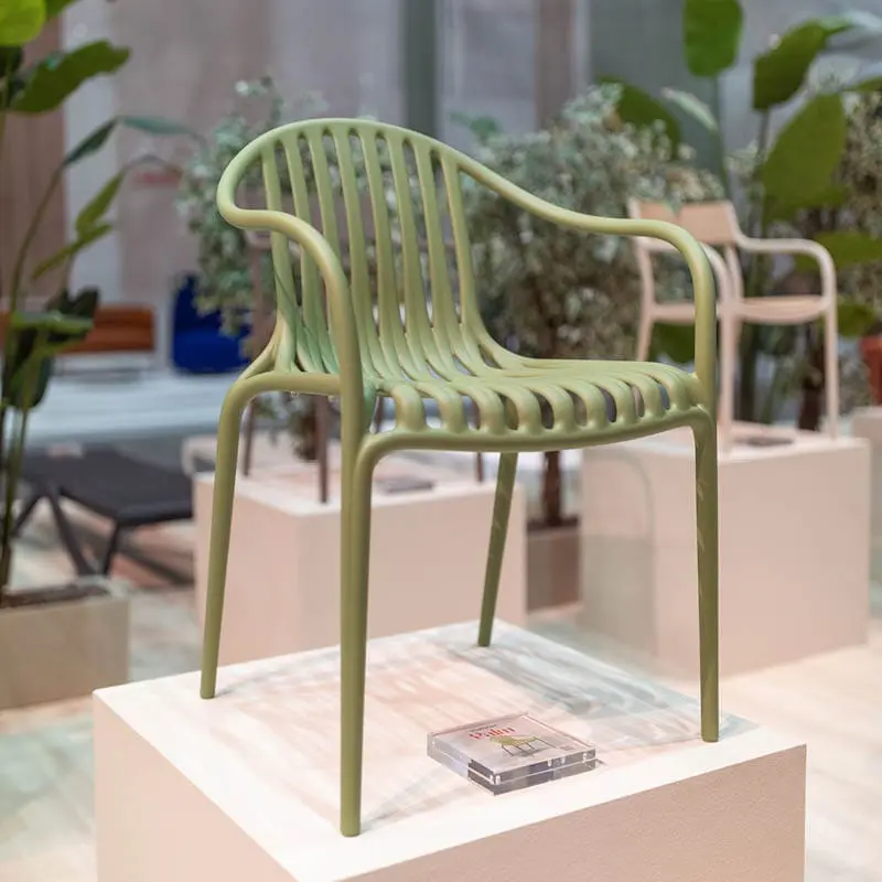 Palm captures the open air with an organic weave that lets the breeze flow through. Conceived as a single gesture in injected polypropylene, it offers a continuous shell that is weather-resistant, ergonomic, and lightweight. Its plant-inspired pattern reduces heat, improves ventilation, and enhances the silhouette; ideal for high-traffic spaces such as hotel terraces, restaurants, and pool bars, it is easy to move and allows for quick reconfiguration. Quitllet also introduced the expansion of the Africa collection along with new finishes and versions of Madison.